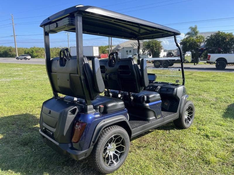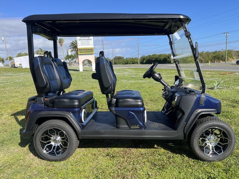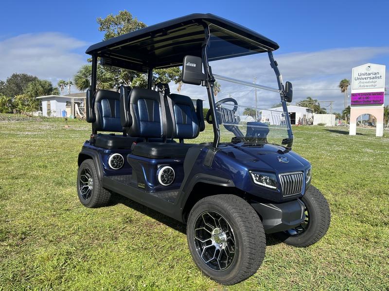 Experience the 2025 Evolution D5-Ranger 4 Plus Blue, a luxury street-legal golf cart with advanced lithium power and stylish design — available now in Texas, with nationwide delivery and export options from Golf Carts Hub.